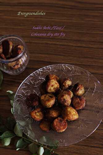 Sukhi arbi or dry colocasia stir fry makes a good accompaniment with any meal.