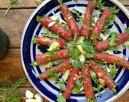 A Bresaola, Parmesan and arugula appetizer is one you can make in no time, with no fuss and no cooking or baking.