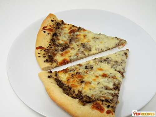 A tapenade made from green and black olives spread on a homemade pizza crust and topped with mozzarella cheese.