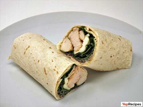 Chicken breast, fresh mozzarella, fresh baby spinach, and an olive tapenade spread wrapped in tortillas.