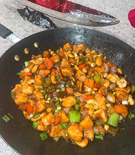 Thai cashew chicken or gai pad med mamuang is a chicken stir fry with cashew nuts.
