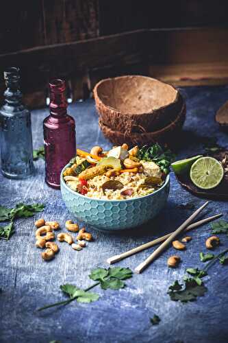 A quick and easy to make Thai style chicken & cashew stir fry served on a bed of rice.