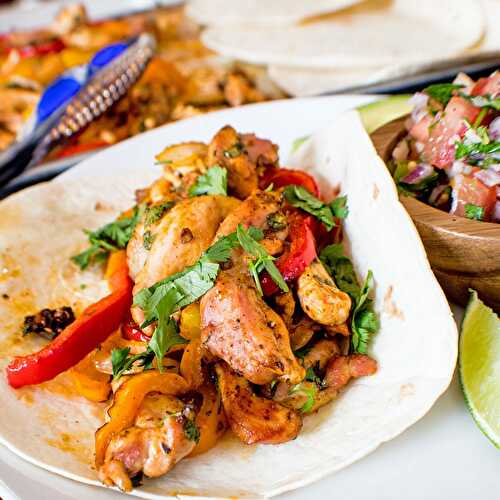 Pair juicy chicken with delicious veggies, soft tortillas and whichever condiments you want to add to make a gorgeous chicken fajitas recipe.
