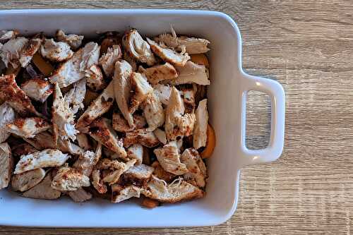 Sheet pan chicken fajitas, that have been marinated in a yogurt and spice mixture.