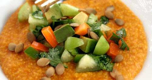 Karina's gluten-free pumpkin polenta recipe with fresh avocado salsa is vegan and dairy-free.
