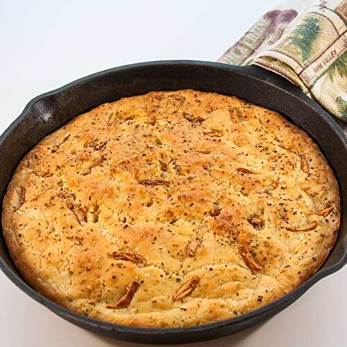 This delicious Skillet Rosemary Focaccia Bread takes less than 1 hour to make! if you love Focaccia, this is the recipe for you!