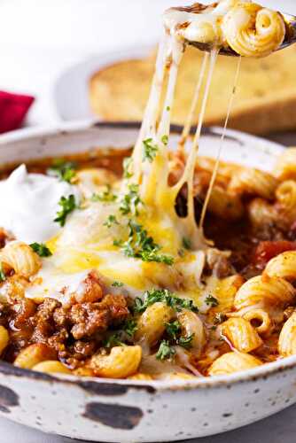Crockpot goulash (aka American Chop Suey) is a rich and hearty meal with ground beef, aromatics, a tomato sauce base and tender pasta.