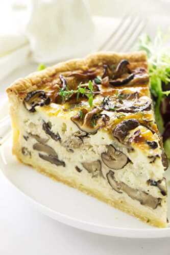 This thick and creamy Mushroom and Goat Cheese Quiche is filled to the brim with a mixture of roasted mushroom, goat cheese, herbs, eggs and cream.
