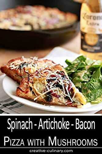 A unique blend of some of my favorite ingredients makes this Spinach, Artichoke, Bacon, and Mushroom Pizza my new favorite!