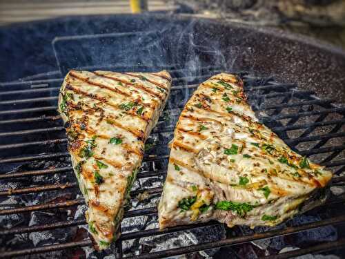 A recipe for a grilled Swordfish steak that is cooked to perfection and served with a creamy lemon-dill aioli sauce.