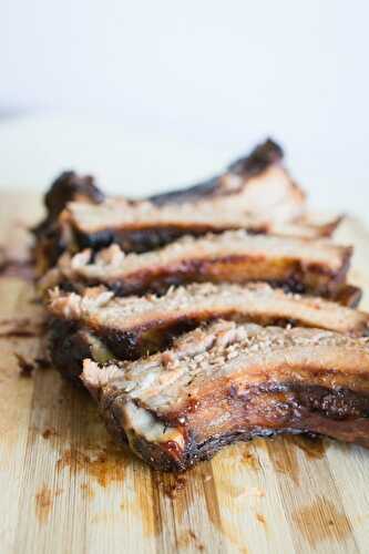 After an overnight marinade, these Char Siu pork ribs, also known as Chinese BBQ pork ribs, are cooked slowly over a water bath in the oven.