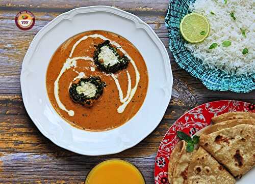 A Paneer recipe - Soft spinach kofta balls with paneer stuffing served in tomato based smooth gravy, best enjoyed with roti, naan or rice.