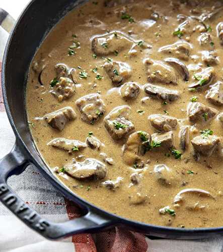 The original Russian beef “stroganov” is actually made from the thinly sliced beef, usually taken from a tender cut of meat like fillet, since this