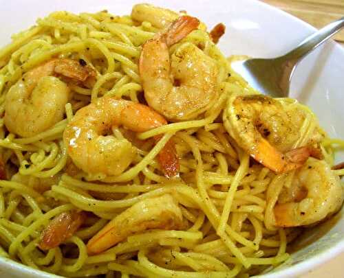 Shrimp and vegetables are cooked with noodles and typical Singapore spices to make this tasty, quick and easy Singapore shrimp noodles recipe