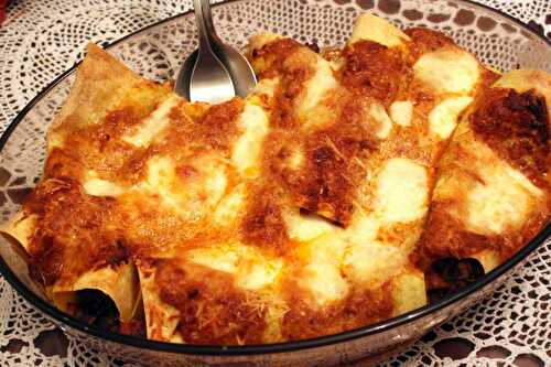 I just made a bolognese sauce, filled the cannelloni with it, sprinkled with grated cheese and 20 minutes later you have a delicious dinner ready.