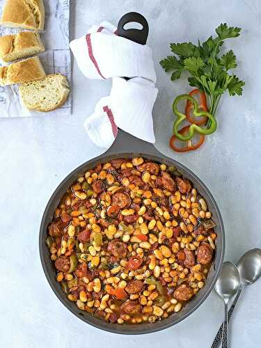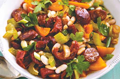 This Spanish white bean stew is a great way to eat your beans! The spicy chorizo makes it extra warm and cozy, perfect for a weeknight dinner.