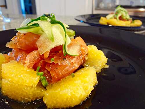 The citrusy sweetness of segmented naval oranges with the white membrane, the crunch of freshly shaved cucumber, the bursts of heat from peppercorns, the tender saltiness of good-quality smoked salmon.