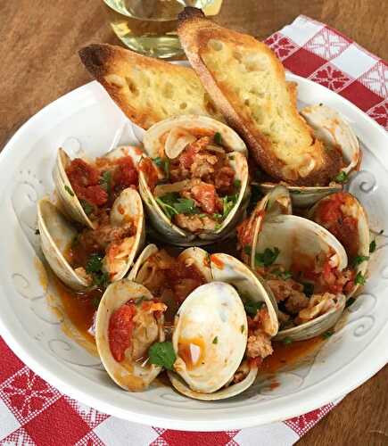 Clams in red sauce are simple and affordable to make at home! The rich and savory broth is infused with saffron, herbs, and aromatics.