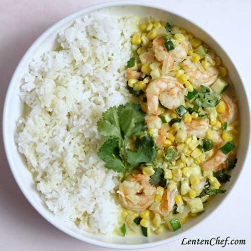 Delicious, elegant mild shrimp curry with corn and squash is so sweet, gentle, and yummy that you going to fall in love with this dish from first sight.