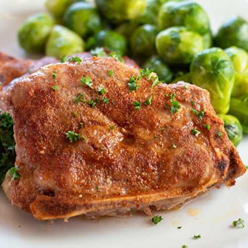 My super easy country style pork loin chops recipe is guaranteed to produce delicious, tender, and juicy pork chops every time! With a generous coating of savory, smoky pork seasoning, these chops are packed full of flavor without needing any BBQ sauce!