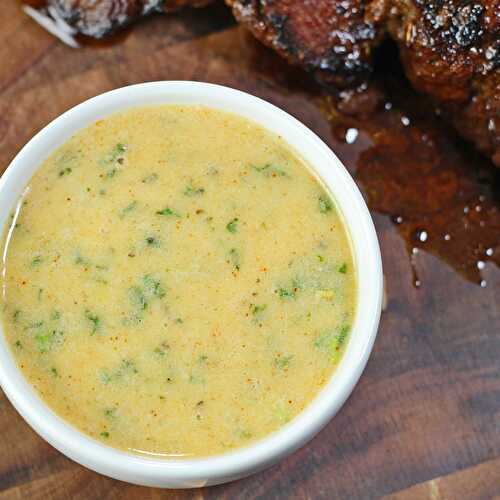 This cowboy butter is an easy-to-make dipping sauce recipe that is perfect for pairing with your family's favorite main course protein! It's loaded with garlic, shallot, herbs, spices, lemon juice, Dijon mustard, and horseradish.