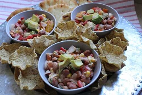 If you like black beans, tomatoes, avocado, and a tangy lime dressing all mixed together and loaded on top of crispy tortilla chips.