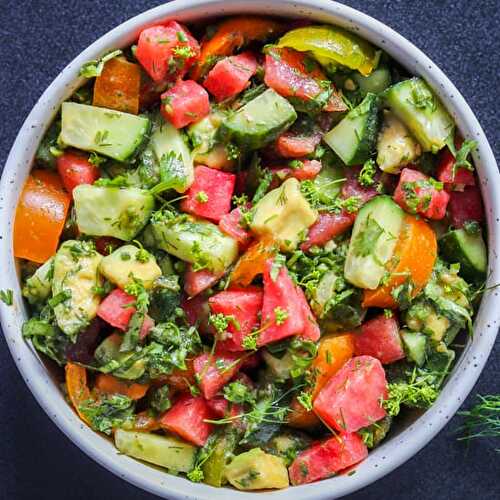 Salad Shirazi is a light, delicious salad packed with fresh vegetables and herbs.