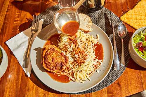 A delicious recipe, handed down through generations, of Greek Chicken Stew with cinnamon and cloves all served of spaghetti with plenty of cheese.