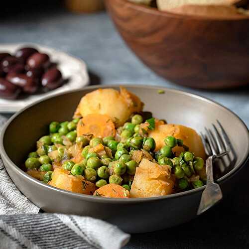 This healthy Greek pea and potato stew is an easy and quick dinner made in one pot.