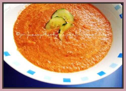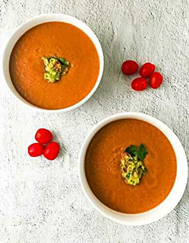 Gazpacho is a classic, chilled, healthy Spanish soup mainly made with fresh tomatoes, red peppers and cucumbers.
