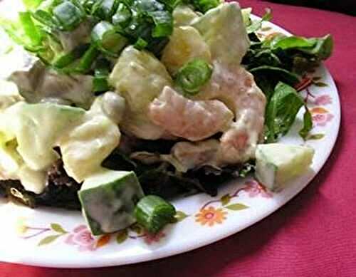 This tasty exotic mango chicken avocado salad is a fusion-style appetizer or light lunch, blending aromatic flavors from southeast Asia.