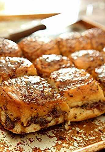 Yummy little packets of ham, bacon, swiss cheese, and mustard flavored with onion and brown sugar.