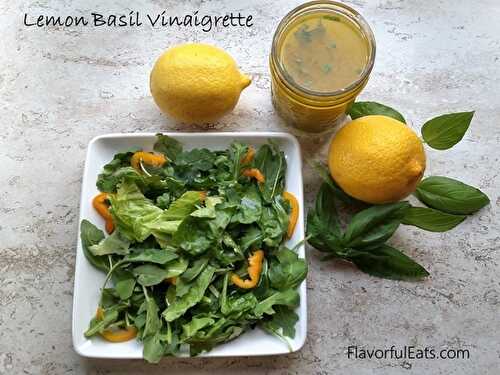 Lemon Basil Vinaigrette is a delicious, healthy vinaigrette salad dressing recipe made with fresh basil, lemon juice, garlic, and olive oil.