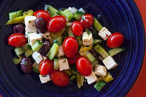 Chunky vegetables and feta tossed in a light lemon anchovy vinaigrette.