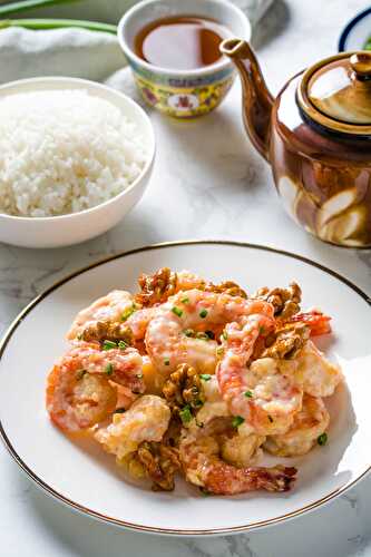 Honey Walnut Shrimp is a Chinese takeout favorite featuring lightly battered succulent shrimp coated in a sweet creamy honey sauce, then topped with crunchy candied walnuts.