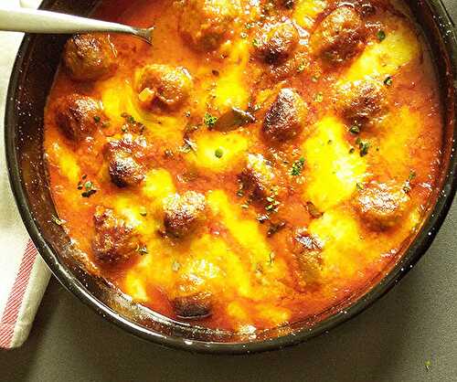 Italian Turkey Meatballs Mozzarella Bake : perfect week dinner, Italian way, served with slices of rustic bread and lettuce.