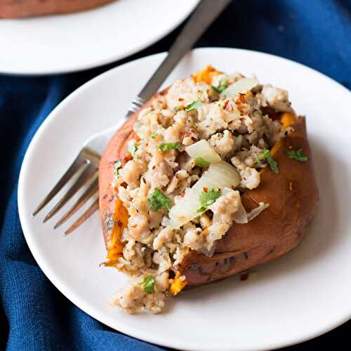 Italian Turkey Stuffed Sweet Potatoes in the Instant Pot is the easiest meal you will EVER make! The entire healthy meal can be made in under 30 minutes!