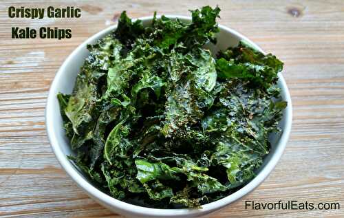 Crispy Garlic Kale Chips have the tasty, satisfying crunch of a chip, but with tons of garlic flavor and made with kale! These homemade kale chips are way better and cheaper than store bought! Crispy