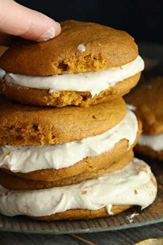 These incredibly moist pumpkin spiced whoopie pies are nothing short of AMAZING.