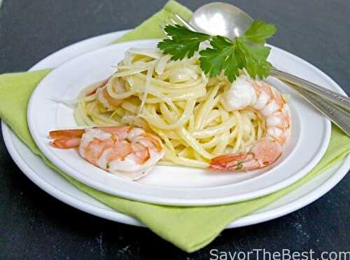 An easy recipe for lemon-garlic shrimp linguini that is quick to put together in a hurry but classy enough for your finest dinner.