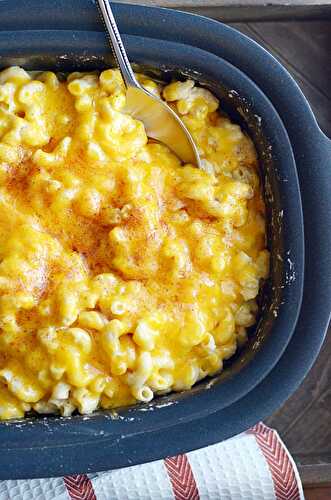 This crockpot mac & cheese is a super quick and easy dinner recipe our mom used to make us a lot.