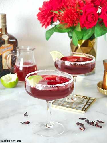 Hibiscus Margarita Cocktail Recipe - delicious, quick and pretty easy to make drink to celebrate Valentine's Day or to serve at a Galentine's Day party!