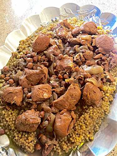 Israeli couscous, also called pearl couscous or maftool, is similar to regular couscous in that it's a small, whole grain-like food made from semolina or wheat flour.