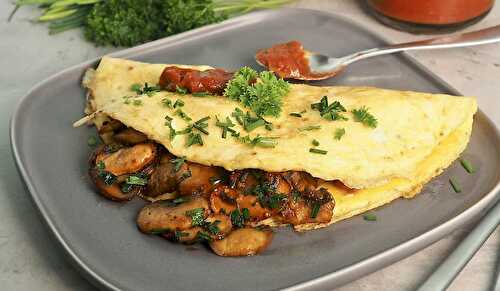 My favorite omelette recipe has shallots, mushrooms, spinach, and Parmesan.