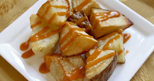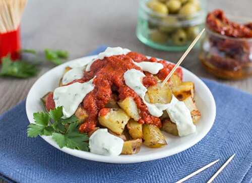 Easy patatas bravas with garlic aioli - a simple version of the Spanish tapas.