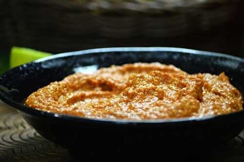 Sweet and spicy Middle Eastern style dip made with walnuts and roasted red bell pepper originating from Aleppo, Syria.