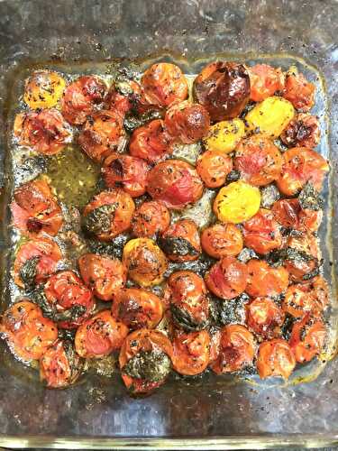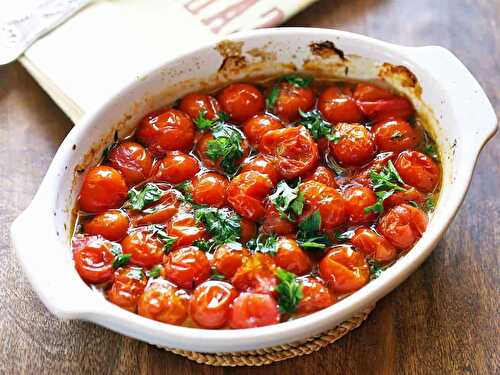 Quick oven-roasted tomatoes are bursting with a sweet concentrated tomato flavor.