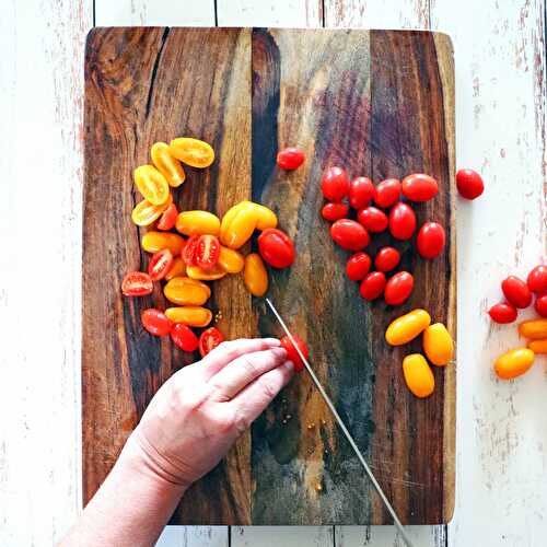 A tasty way to use a batch of the cherry tomatoes from our garden.