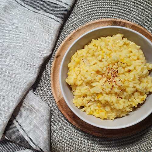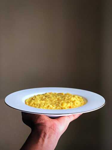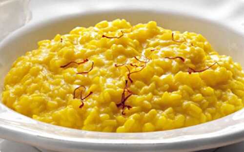 Risotto alla Milanese is a traditional Italian rice dish flavoured with white wine and saffron.