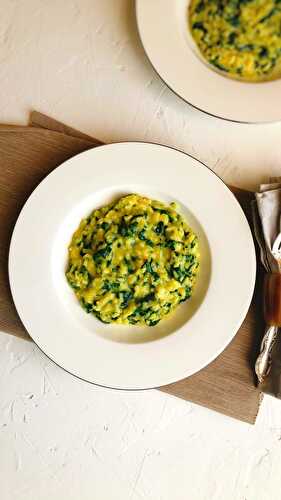 A simple and creamy risotto dish with spinach and risotto that is perfect for when you want a filling meat-free meal fit for the whole family.